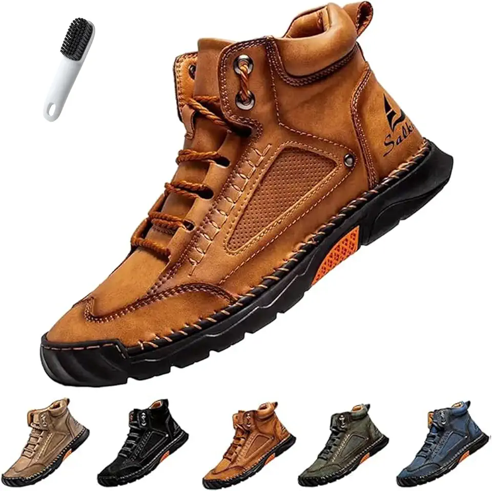 Boots for Men, Handmade Leather Shoes,Comfortable Waterproof Boots Width w/Arch Support for Outdoor Hiking Trekking